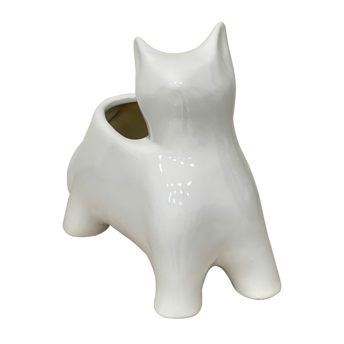 Add a touch of feline grace with this white ceramic Nature Craft cat planter. Its sleek, minimalist design makes it an elegant home for your favorite small plants, blending seamlessly with various interior styles while showcasing your love for animals.