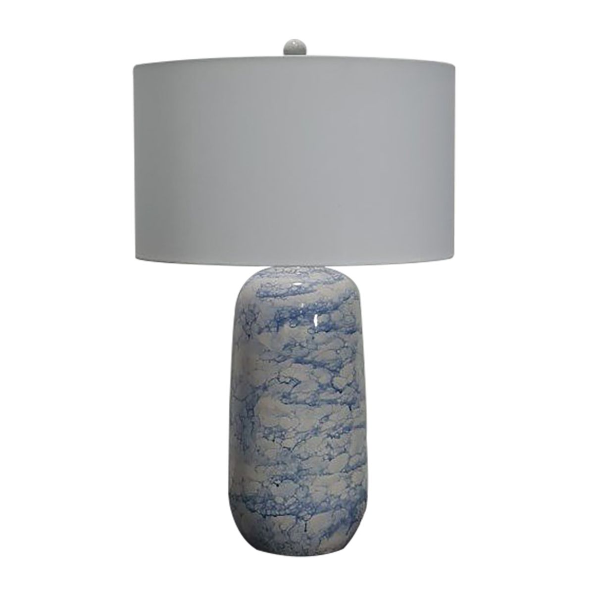 Introduce artistic flair with the Nature Craft Marbled Ceramic Table Lamp. Its sleek, cylindrical ceramic base features a captivating blue and white marbled glaze, ensuring each lamp is uniquely eye-catching. Crowned with a classic white drum shade, this lamp provides soft, ambient lighting, perfect for adding a sophisticated and contemporary touch to any living space.