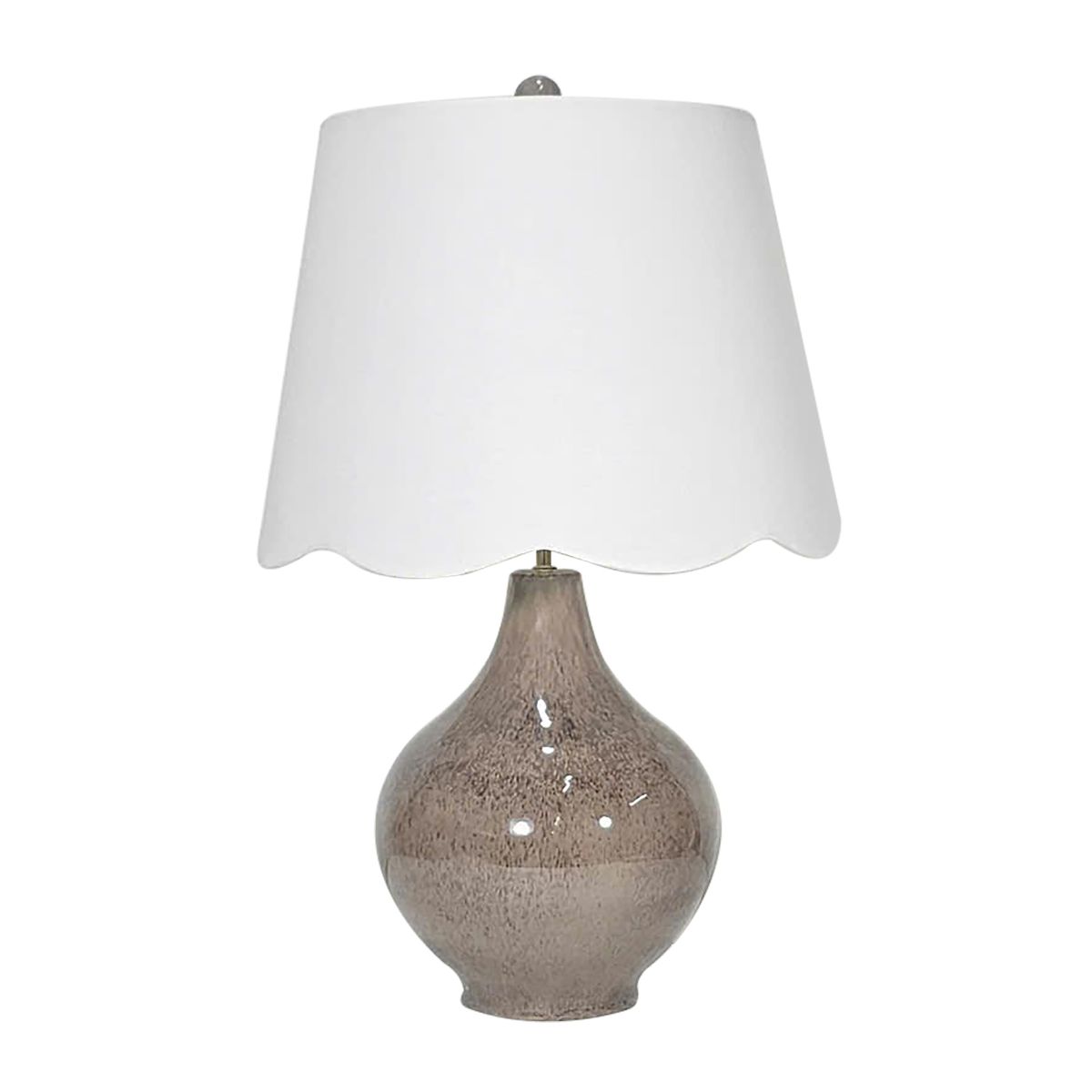 Add a touch of subtle sophistication with the Nature Craft Speckled Ceramic Table Lamp. Its elegantly curved, taupe-glazed ceramic base features delicate speckles, creating visual interest. Paired with a charming white shade boasting a scalloped edge, this lamp provides a soft, diffused glow, perfect for creating a warm and inviting atmosphere in any room.