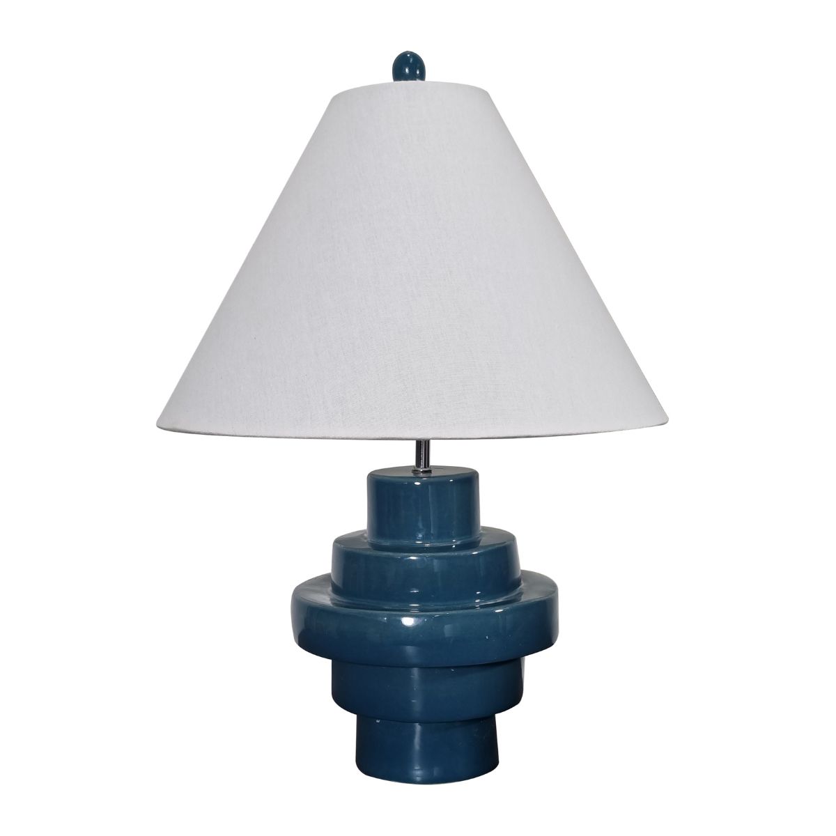 Add a touch of contemporary design with the Nature Craft Stacked Ceramic Table Lamp. Its striking blue glazed ceramic base features a modern stacked, geometric silhouette, creating a bold visual statement. Topped with a classic white tapered shade, this lamp provides soft, inviting illumination, perfect for adding a sophisticated and colorful accent to any modern space.