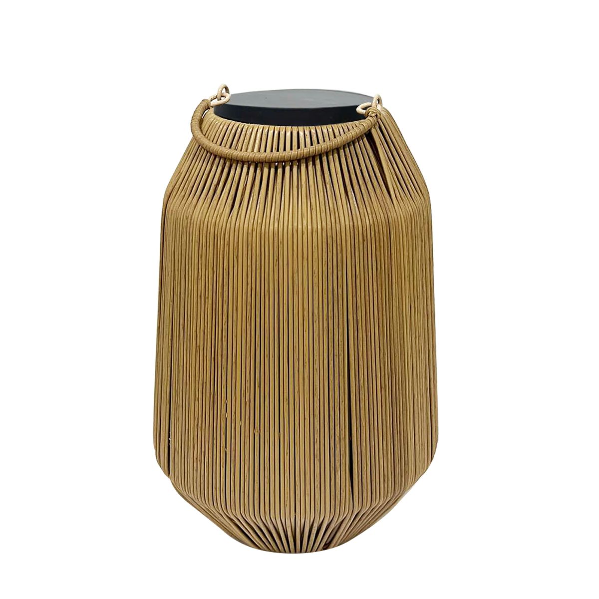 Illuminate your outdoor evenings with the Nature Craft Rattan Solar Lantern. This beautifully crafted lantern features a vertical rattan slat design, offering a warm, natural aesthetic. Equipped with a discreet solar panel on top, it automatically charges during the day and casts a gentle glow at night, providing eco-friendly and effortless ambient lighting.