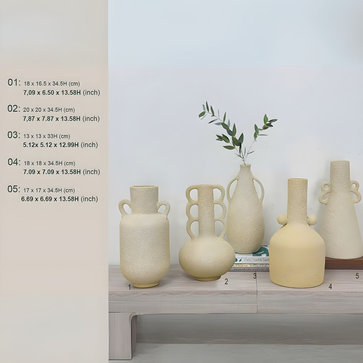 This Nature Craft collection presents five unique ceramic vases, each boasting a distinct texture and shape, from subtle speckles to charming handles. Rendered in versatile cream and warm beige tones, these pieces offer a rustic yet contemporary aesthetic. Perfect for adding an organic, artisanal touch to any interior space.