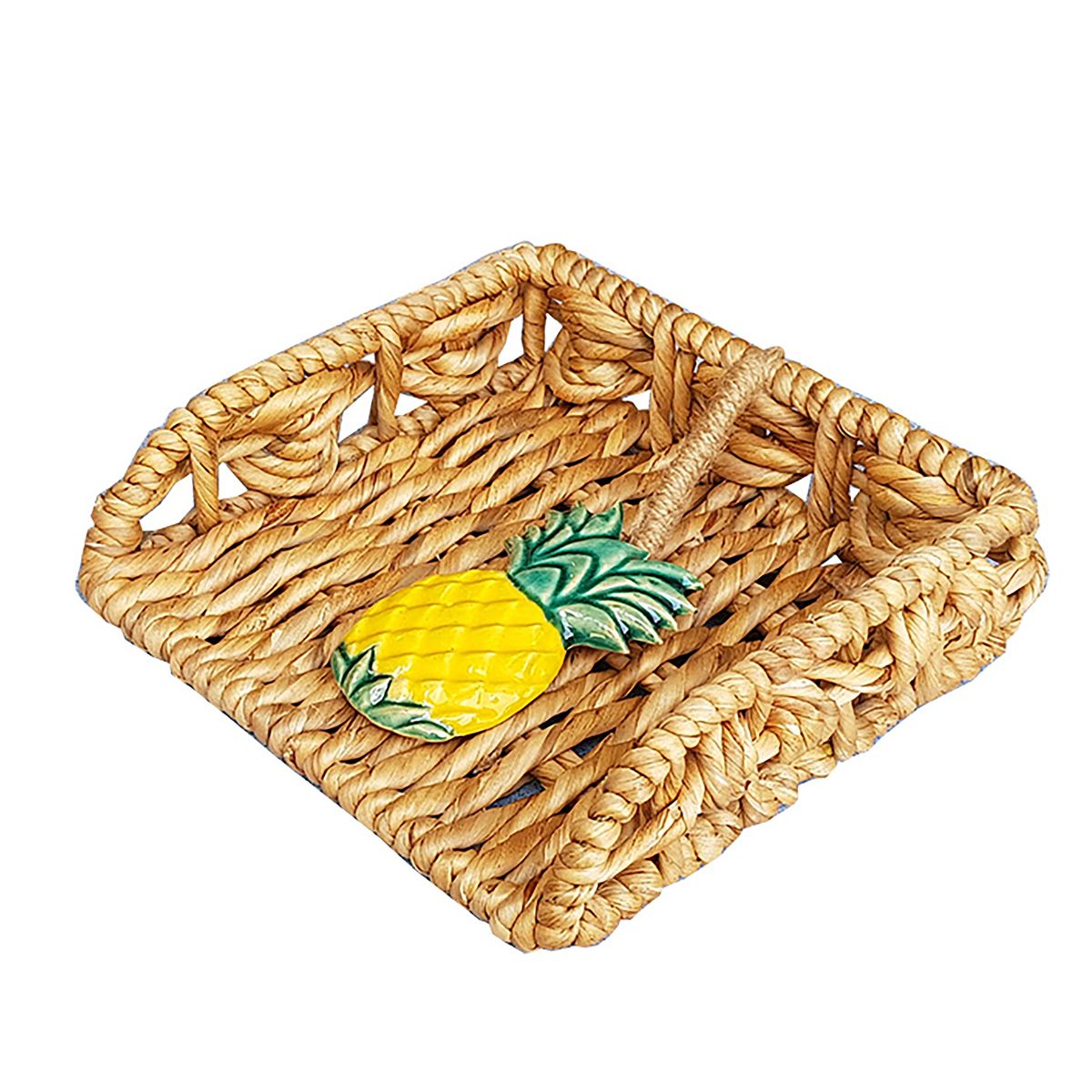 Add a touch of tropical flair to your table setting with the Nature Craft Water Hyacinth Napkin Holder. This handwoven napkin holder features a charming ceramic pineapple accent, bringing a touch of the exotic to its natural design.