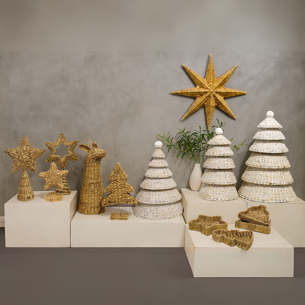 Deck the halls with the Nature Craft Xmas Collection! This enchanting range features an array of festive decor crafted from natural materials, including various sizes of woven Christmas trees and intricate star ornaments. These pieces add a touch of rustic charm and holiday spirit, perfect for creating a warm and inviting atmosphere in your home.